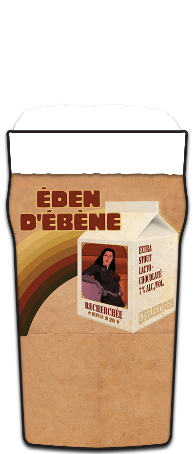 5e volet de la série 10 ans d’ancienneté, Éden d’Ébène fut brassé(e) afin de célébrer la décennie de Pascale Côté au sein du Trou du diable. Celle qui s’assure que nos colonnes balancent, a troqué, le temps d’une brasse, la calculatrice pour le fourquet. Inspirée par sa longue tignasse sombre, Pascale nous propose un Extra Stout lacto-chocolaté de couleur d’ébène dense aux reflets brunâtres. La mousse, aux allures de crème de moka, est accentuée par le service au robinet. D’abord, le parfum de cacao amère vous envoûtera avant de faire naître sur vos papilles une lancinante valse. S’en suivra un tango entre la liqueur de café sirupeuse et l’amertume du chocolat noir, assaillies subtilement par le fruit rouge, telle la rose que l’on tient entre les dents. En rideau final, le sucré se dévoile, offrant aux plus gourmands l’excuse de s’y retremper les lèvres. Espérons que votre palais saura apprécier ce nectar exceptionnel, tout autant que nous apprécions la présence réconfortante de cette femme d’exception, à l’humour contagieux.