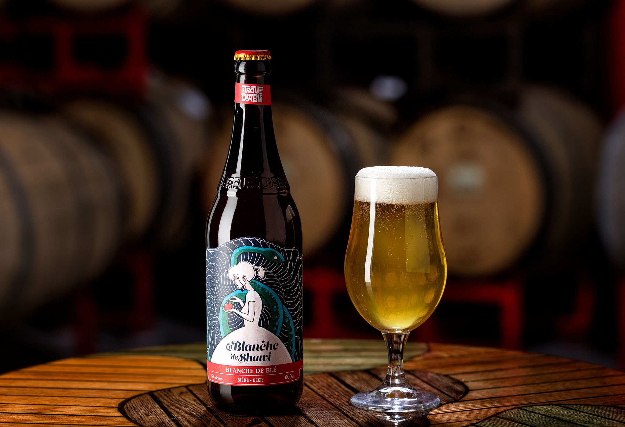 Cette blanche classique, inspirée de la Blanche de Bruges, fait partie des doyennes du Tdd et est grandement appréciée par notre équipe. Elle contient son lot d’ingrédients tels que curaçao (écorces d’orange), coriandre, épices et 50% de son apport en cérales provient du blé et des flocons de blé.