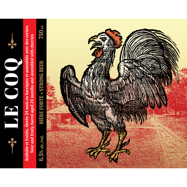 Le Coq est une bière de seigle sure barriqué, puis assemblé sur 450 livres de cerises sures. Il en résulte une bête ambrée et fière, à la coiffe tenace, qui présente au nez des notes lambiquées, sur fond de griottes et de sucre d’orge. Son corps mince chante dès l’aube des notes vives, au fruité fort généreux, saisissante attaque qui éveille les sens.