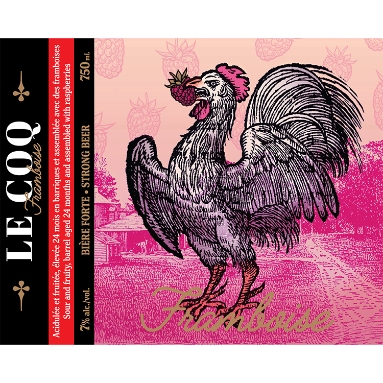 Le Coq framboise reprend la recette et le procédé de notre légendaire Coq aux cerises griottes, mais a plutôt maturé sur un lit de framboises, dans un foudre, pendant plus longtemps pour développer un goût de sucre d’orge et un arôme boisé plus prononcé.