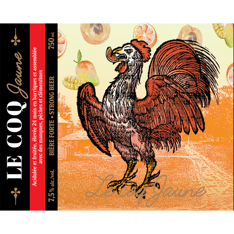 Le coq jaune incarne donc parfaitement une saison sure affinée en fûts de vin rouge pendant 2 années qui a été par la suite assise sur un lit de mangue, de clémentine et de pêche pour une macération de 5 mois.