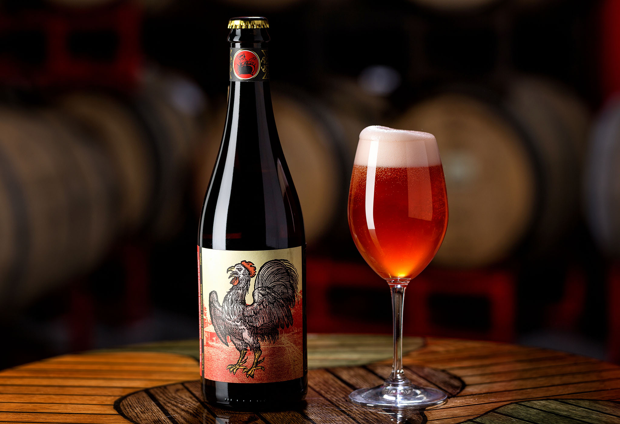 INSPIRED BY KRIEK LAMBICS. THESE BEERS OF BELGIAN ORIGIN ARE AMONG THE MOST SOUGHT AFTERS SO, IF YOU CAN PUT YOUR HAND ON LE COQ, BE CAREFUL NOT TO SING UNTIL EARLY MORNING.